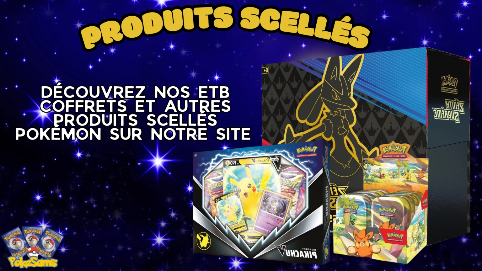En rupture de stock Produits scellés Duo Pokébox Méga Dracaufeu EX X et Y 55,00 € Lire la suite En rupture de stock Produits scellés Minitins M2.5 Héros Transcendants 13,50 € Lire la suite En rupture de stock Produits scellés ETB M2.5 Héros Transcendants 65,00 € Lire la suite En rupture de stock Accessoires Protection Souple Display Phoenix Shield 3,50 € Lire la suite En rupture de stock Accessoires Protection Souple ETB Phoenix Shield 3,70 € Lire la suite Produits scellés Tripack 30 ans Journée Pokémon 2026 22,00 € Ajouter au panier En rupture de stock Produits scellés 2 Tripacks ME2.5 Héros Transcendants 43,00 € Lire la suite En rupture de stock Produits scellés 2 Duopacks ME2.5 Héros Transcendants 31,00 € Lire la suite QUI SOMMES NOUS ?Professionnel depuis 5 ans, on vous propose sur notre site en ligne POKESAMS des produits du TCG Pokémon pour satisfaire la demande sur cette licence. Nous ContacterPar Email : pokesams@hotmail.comInstragram : Pokesamss